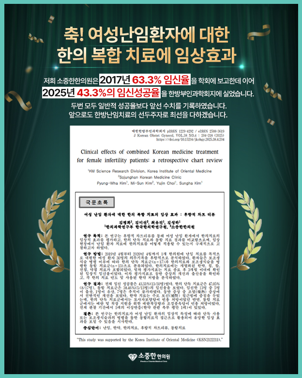 임신율 향상, 착상율 증가되는 소중한 한방치료로
