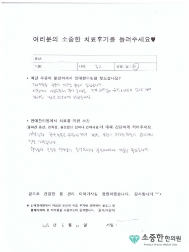 만성골반염으로 인한 통증에서 벗어났습니다.